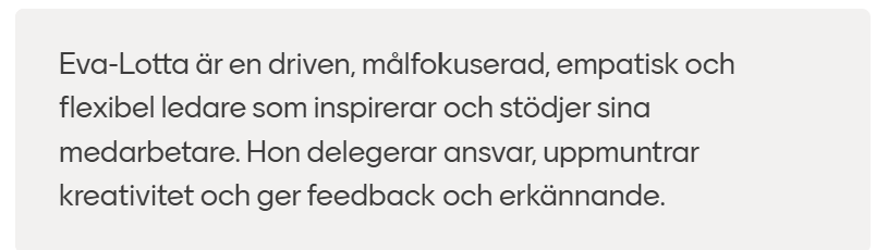 Feedback från tidigare medarbetare om Eva-lotta och hennes ledarskap:
